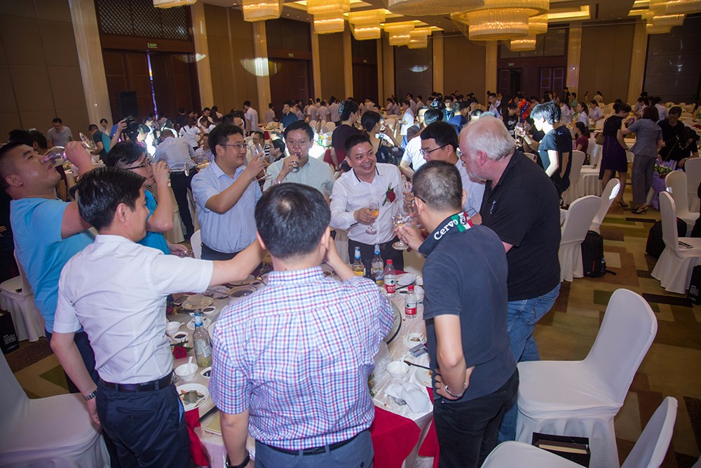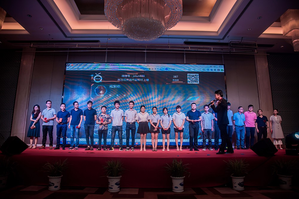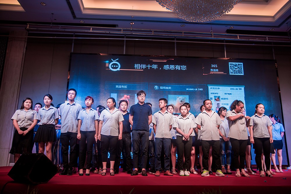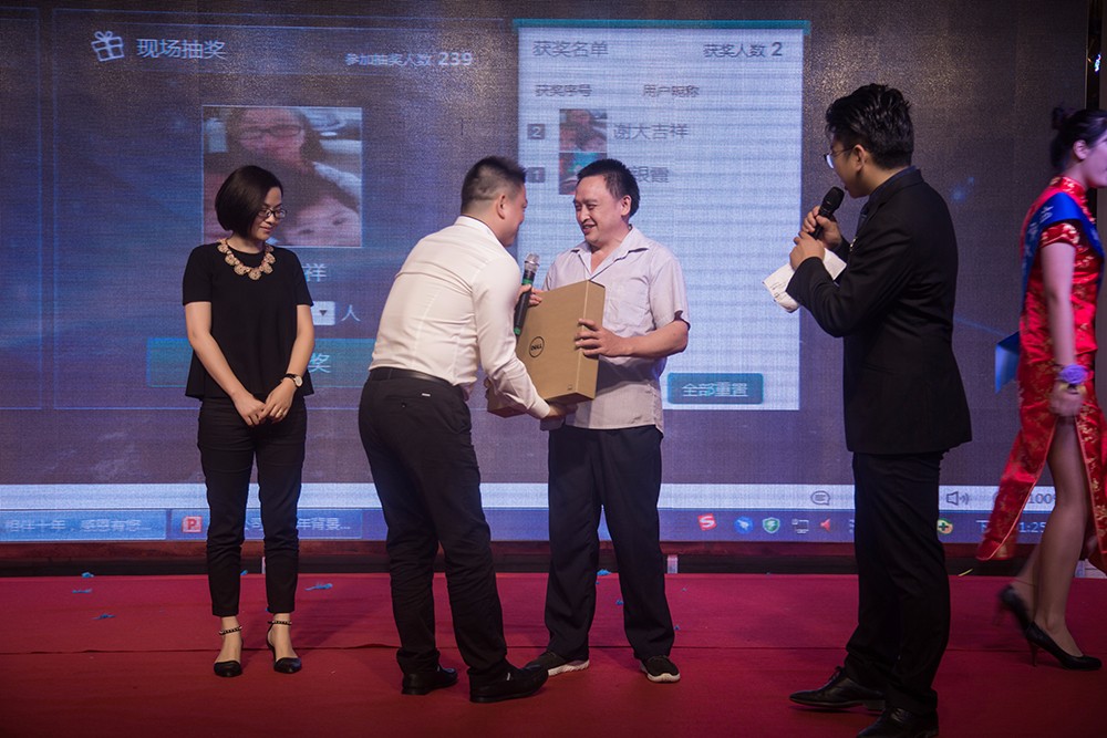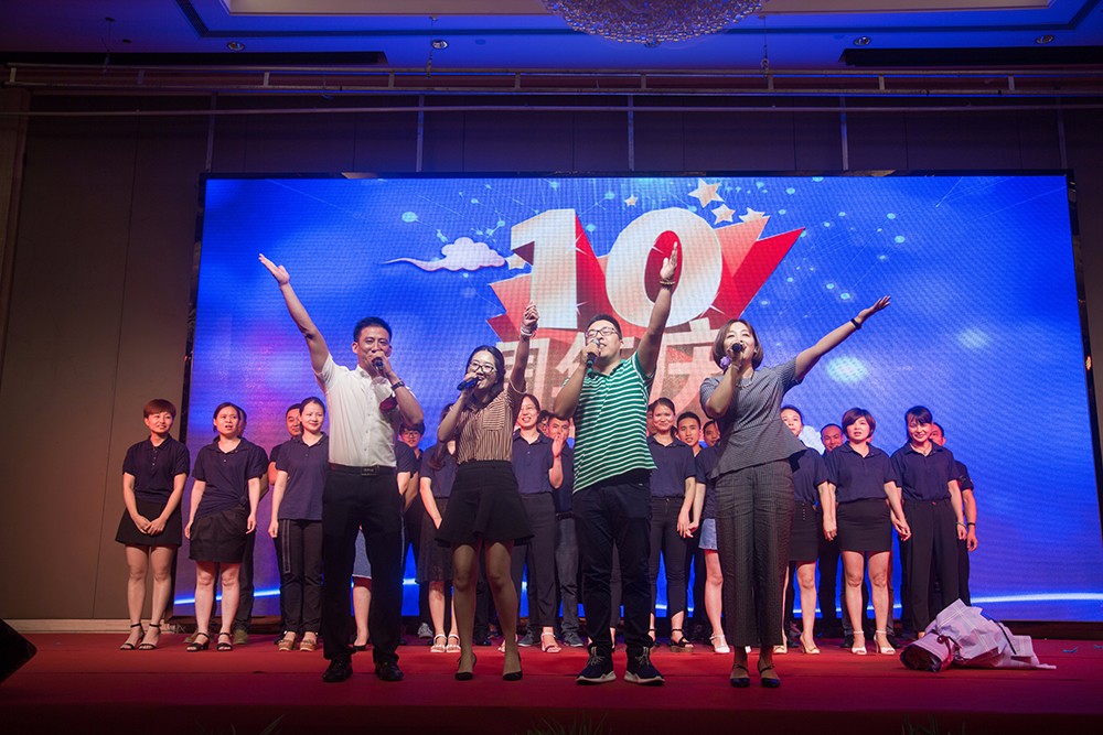 在所有表彰結(jié)束后,主持人邀請(qǐng)茅總登臺(tái)宣布“卓倫企業(yè)十歲了”,在全場(chǎng)的掌聲中,大家高舉酒杯祝賀“卓倫企業(yè)成立十周年!”,慶典活動(dòng)正式開始。