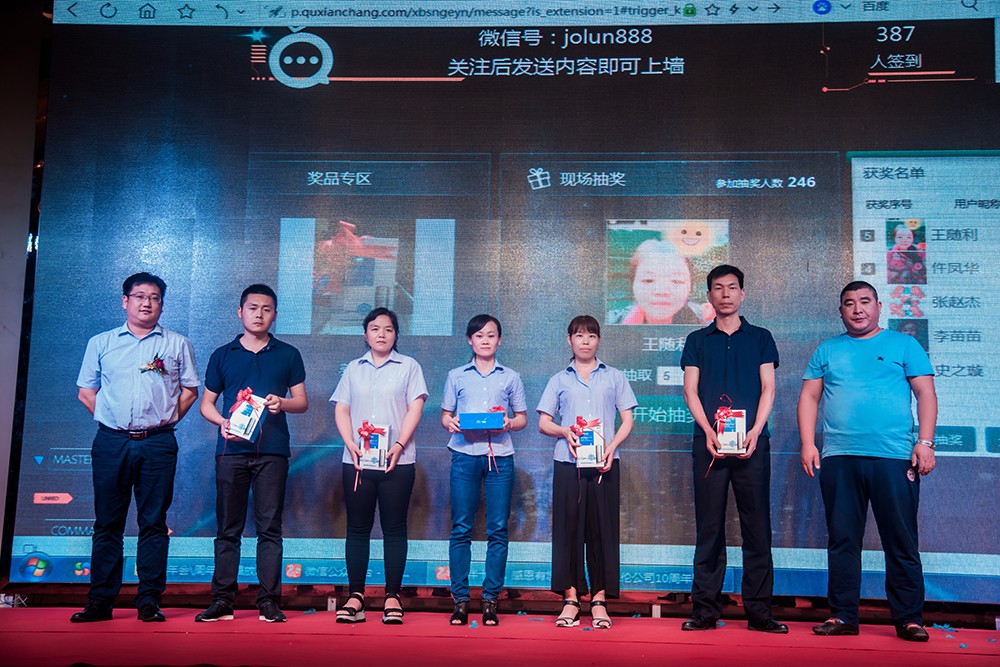 慶典文藝活動(dòng)十分精彩,現(xiàn)場(chǎng)晚會(huì)高潮不斷,公司內(nèi)部集體舞《玖月奇跡-踩踩踩》散發(fā)出朝氣、活力與激情;搖滾嗨歌,不斷的點(diǎn)燃全場(chǎng)的激情;平衡術(shù)讓現(xiàn)場(chǎng)觀眾屏息觀察,感受平衡術(shù)之神奇。同時(shí)現(xiàn)場(chǎng)還有各類小游戲穿插,小禮物與紅包競(jìng)猜不斷,精彩迭起,一次次把晚會(huì)推向高潮。令人興奮不已的抽獎(jiǎng)活動(dòng)更是貫穿始終,公司為答謝各位領(lǐng)導(dǎo)和職工們的辛勤付出準(zhǔn)備了非常豐富的獎(jiǎng)品,由50個(gè)幸運(yùn)獎(jiǎng)自拍桿、5個(gè)三等獎(jiǎng)養(yǎng)生杯、3個(gè)二等獎(jiǎng)電熱水壺、2個(gè)一等獎(jiǎng)電視機(jī),2個(gè)特等獎(jiǎng)筆記本電腦。最后由公司內(nèi)部節(jié)目組成的大合唱《相親相愛的一家人》,向大家詮釋卓倫人的團(tuán)結(jié),正如歌詞所唱有福同享、有難同當(dāng)?shù)囊患胰藟?mèng)朝著同一個(gè)方向打造,最后所有卓倫人祝卓倫企業(yè)越來越好,越來越輝煌。